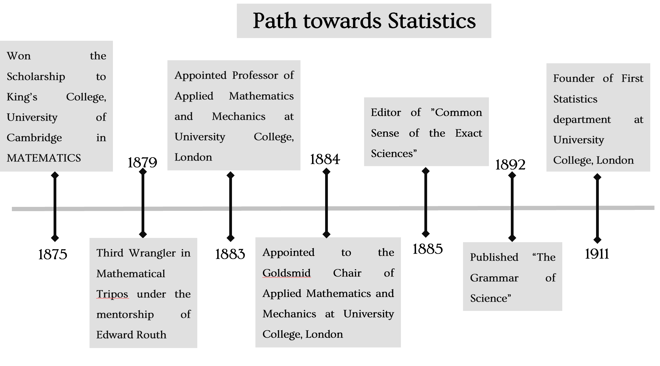 - Founder of world’s first University Statistics department in University College London in 1911.